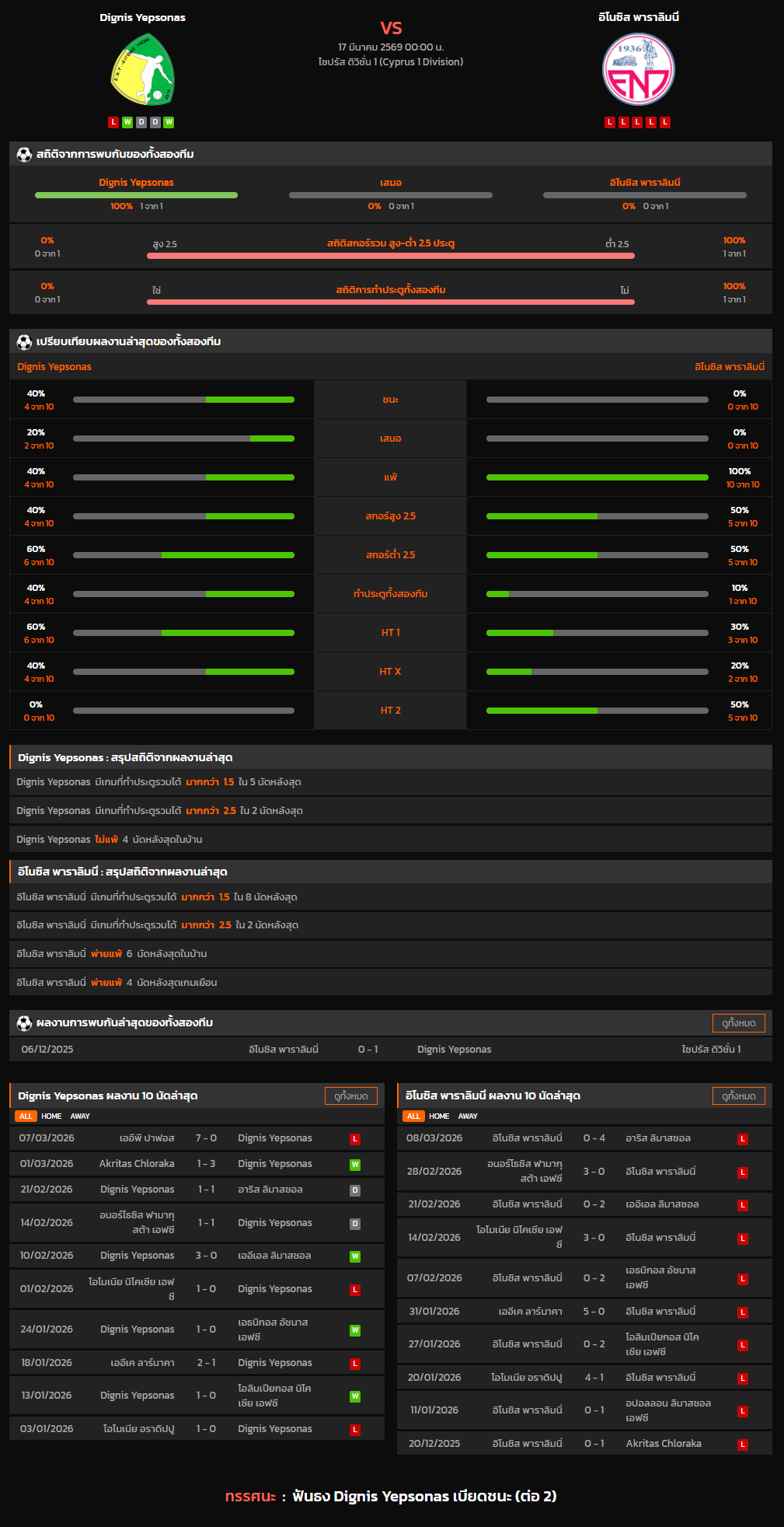 วิเคราะห์บอล ไซปรัส ดิวิชั่น 1 2025-26 Dignis Yepsonas VS อิโนซิส พาราลิมนิ่